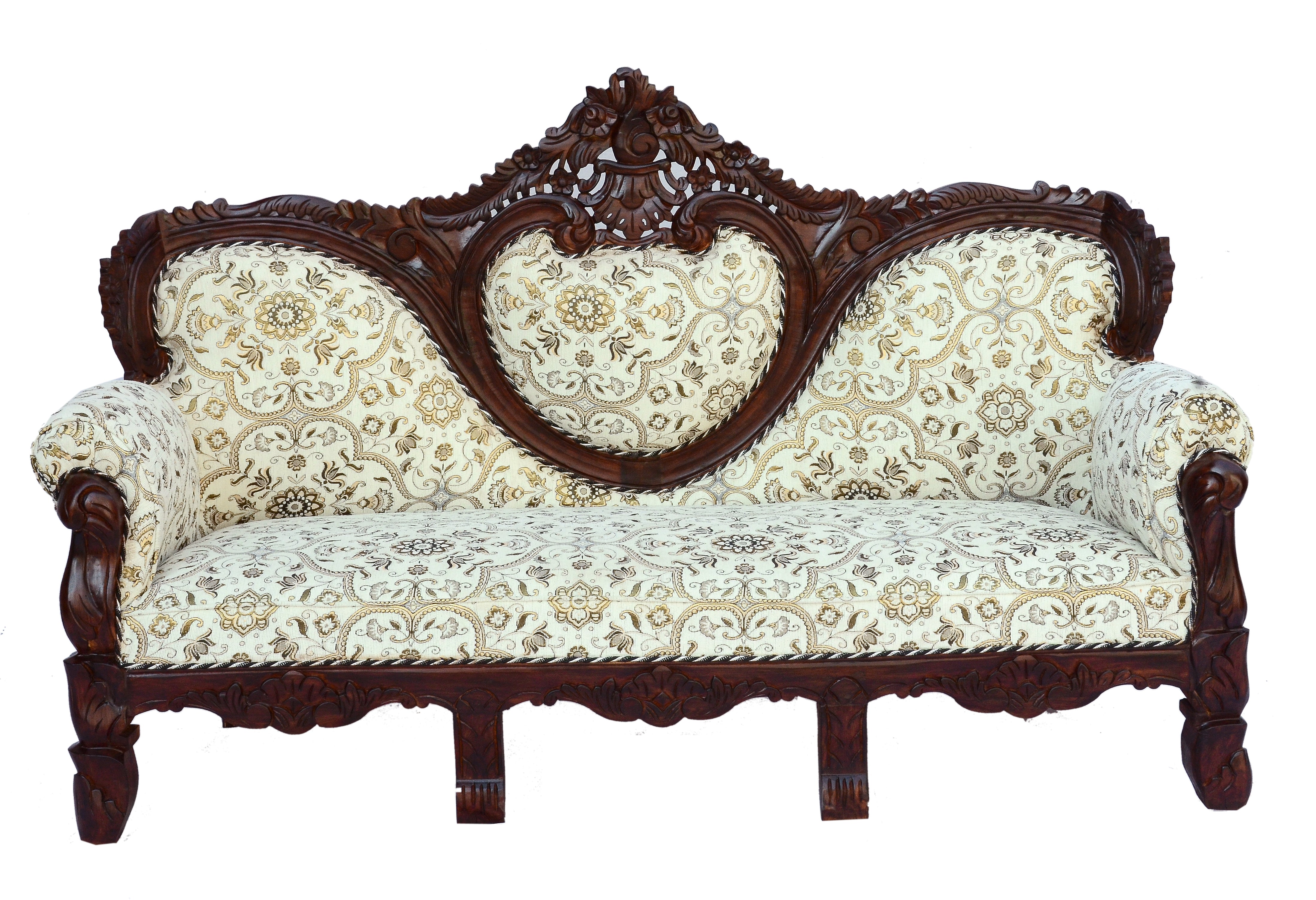 Bring elegance and comfort into your home with this Solid Sheesham Wood 2 Seater Sofa with Cushions from Furniture One Shop. Beautifully handcrafted from 100% solid Sheesham wood, this sofa features a rich honey brown polished finish that highlights the natural wood grain and fine detailing.