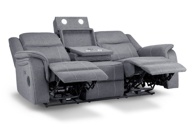 Buy Online Galaxy Tech Fabric 3 Seater Electric Recliner Sofa In Grey - UK Base