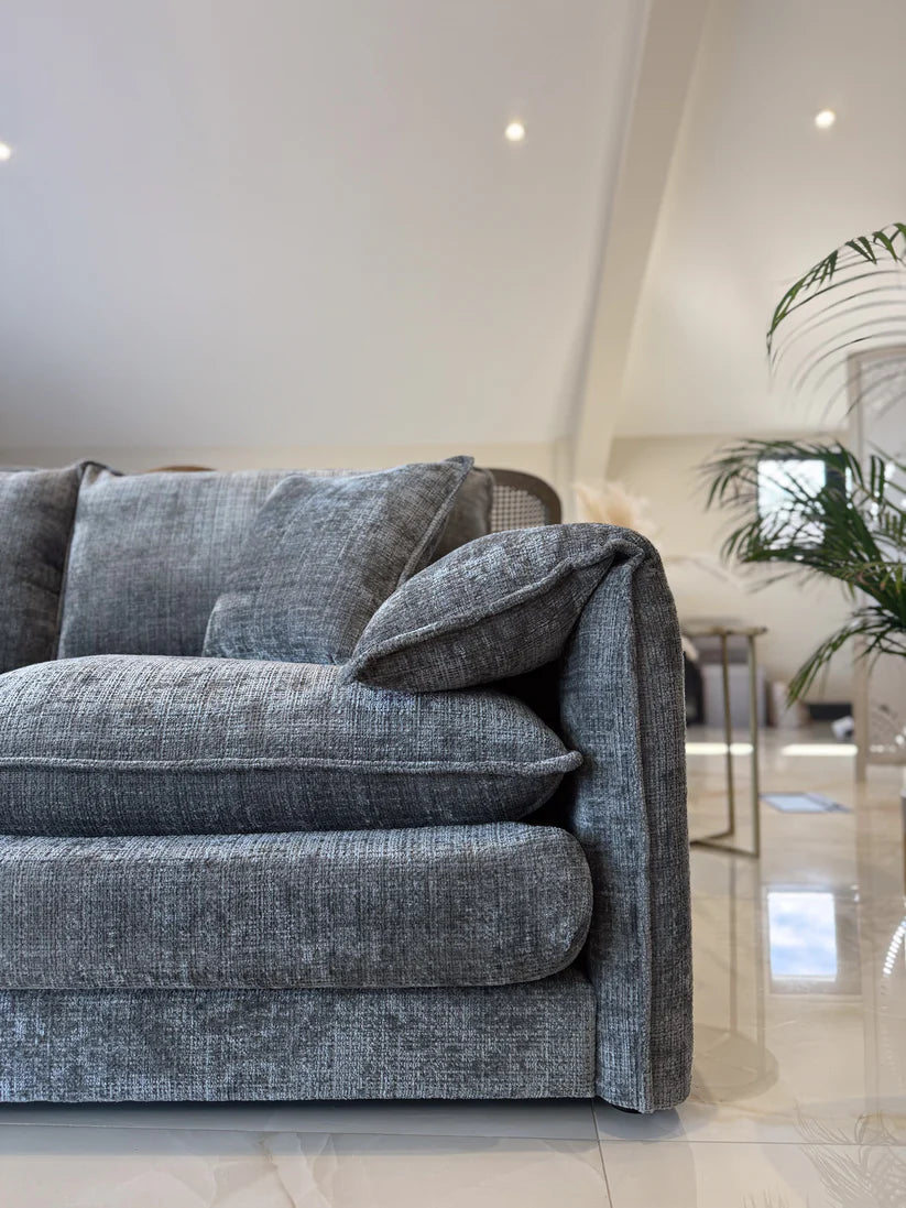 Experience premium comfort with the Solaya Grey 3 Seater Sofa, designed to bring both style and support to modern UK living rooms. Upholstered in luxuriously soft chenille fabric, this elegant fabric sofa offers a warm, inviting look that complements contemporary interiors.
