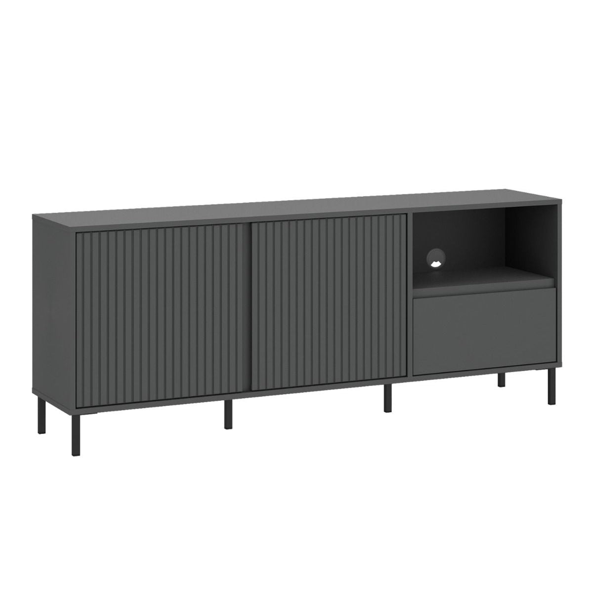 Constructed from durable laminated chipboard with MDF fronts, this wide anthracite TV stand is designed for long-term use while retaining its refined showroom appeal.