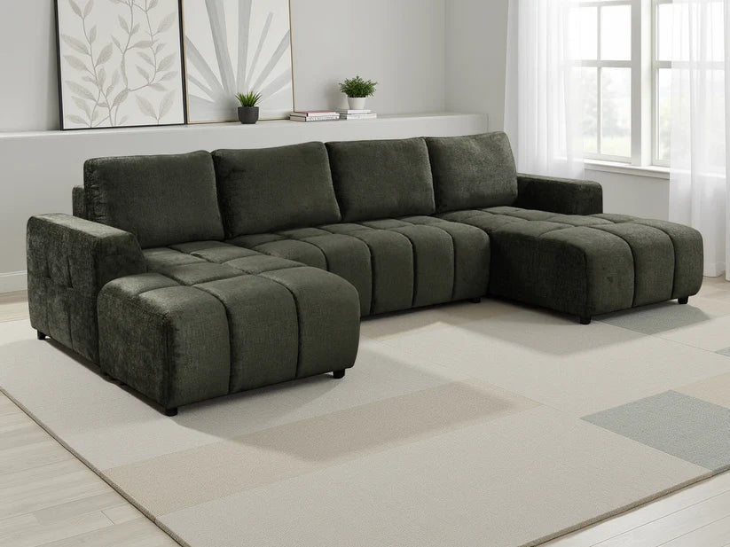 Make a statement in your living room with the Shanghai Luxury U-Shape Corner Sofa Bed in Green, designed for modern UK homes that need both space and functionality. This large U-shape corner sofa bed offers generous seating for family and guests while effortlessly converting into a comfortable sleeping area for overnight stays.