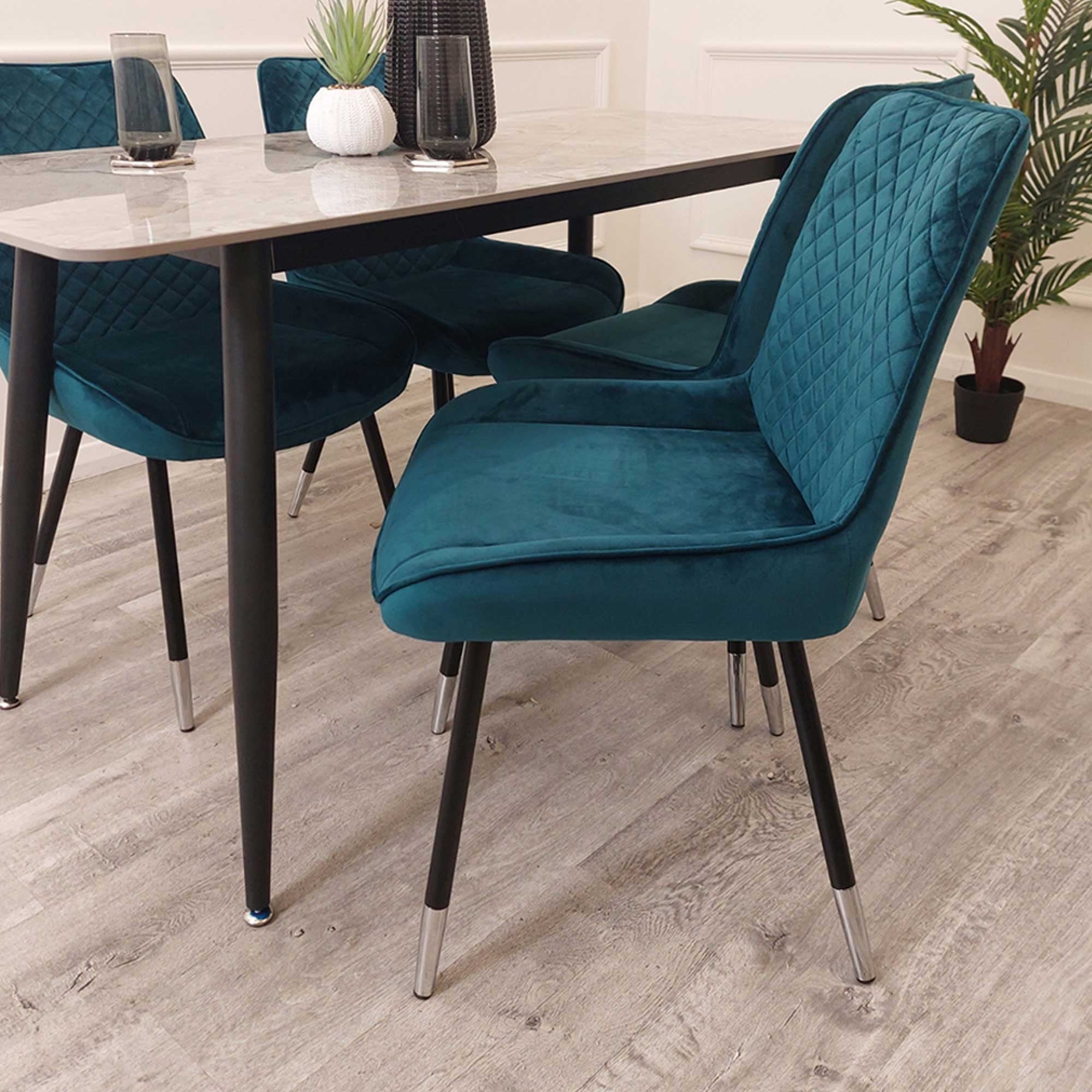 Buy Online Luna Teal Velvet Dining Chairs in Pair - UK Base