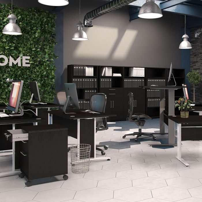 Buy Online Prima Bookcase 1 Shelf With 2 Drawers + 2 File Drawers In Black Woodgrain - UK Base