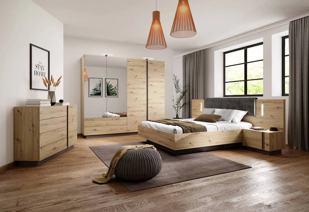 Arco Wooden King Size Bed in Oak Artisan & Graphite