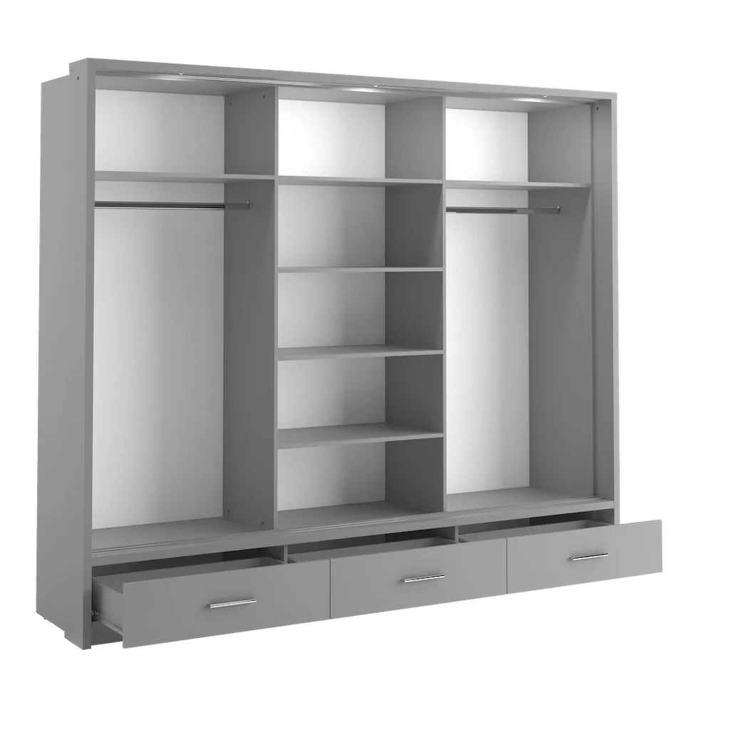 Buy Online Arti 23 Wardrobe With 3 Sliding Doors In Grey Matt With LED - UK Base