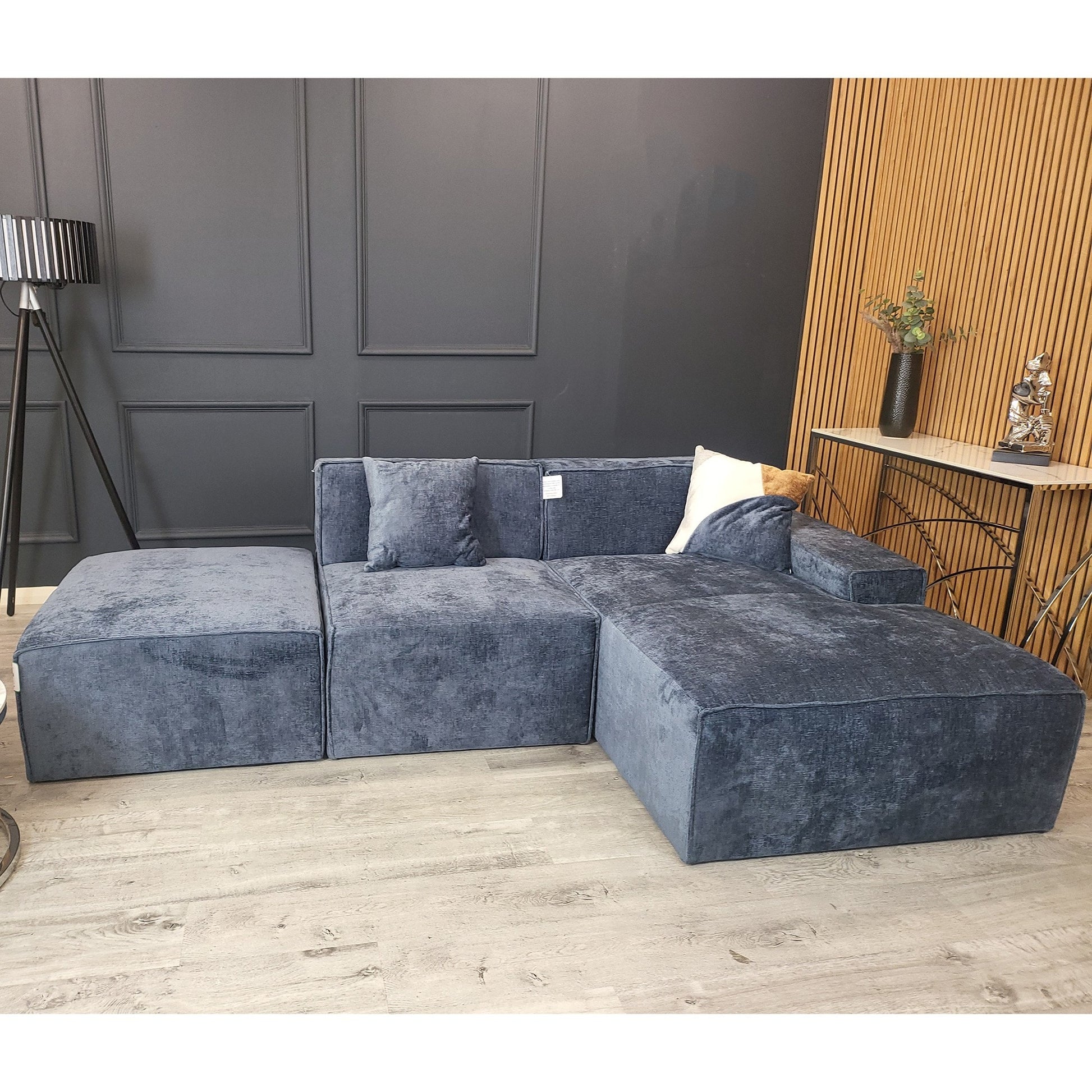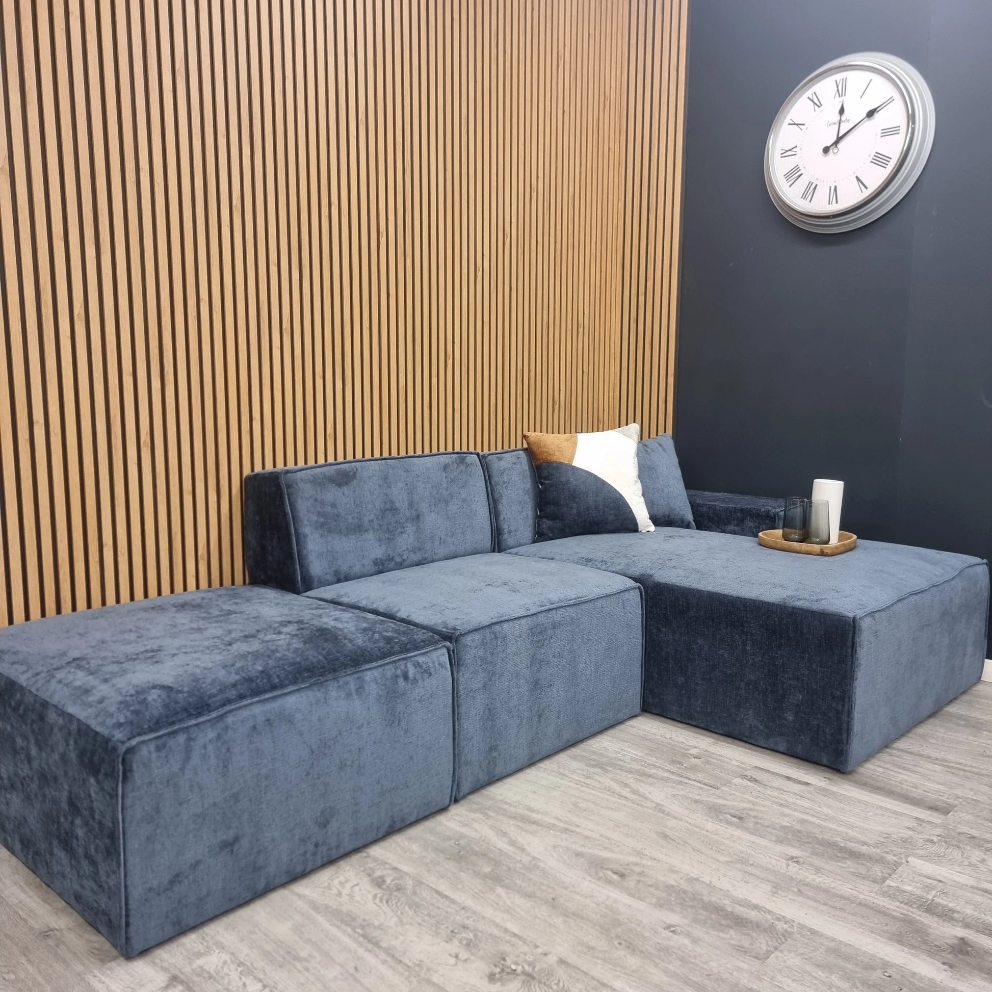 Buy Online Atlanta Modula Right Hand Corner Sofa in Blue Textured Chenille - UK Base