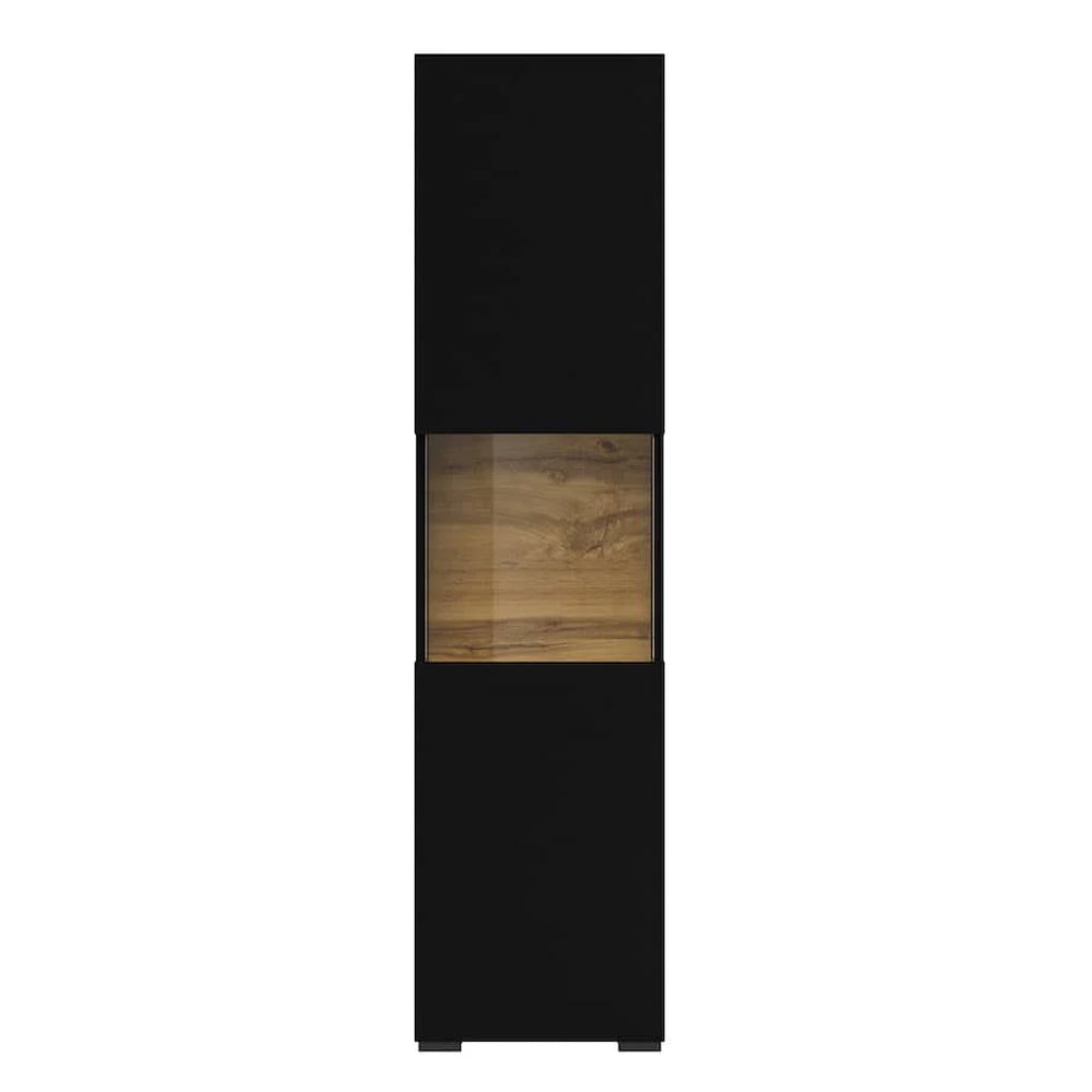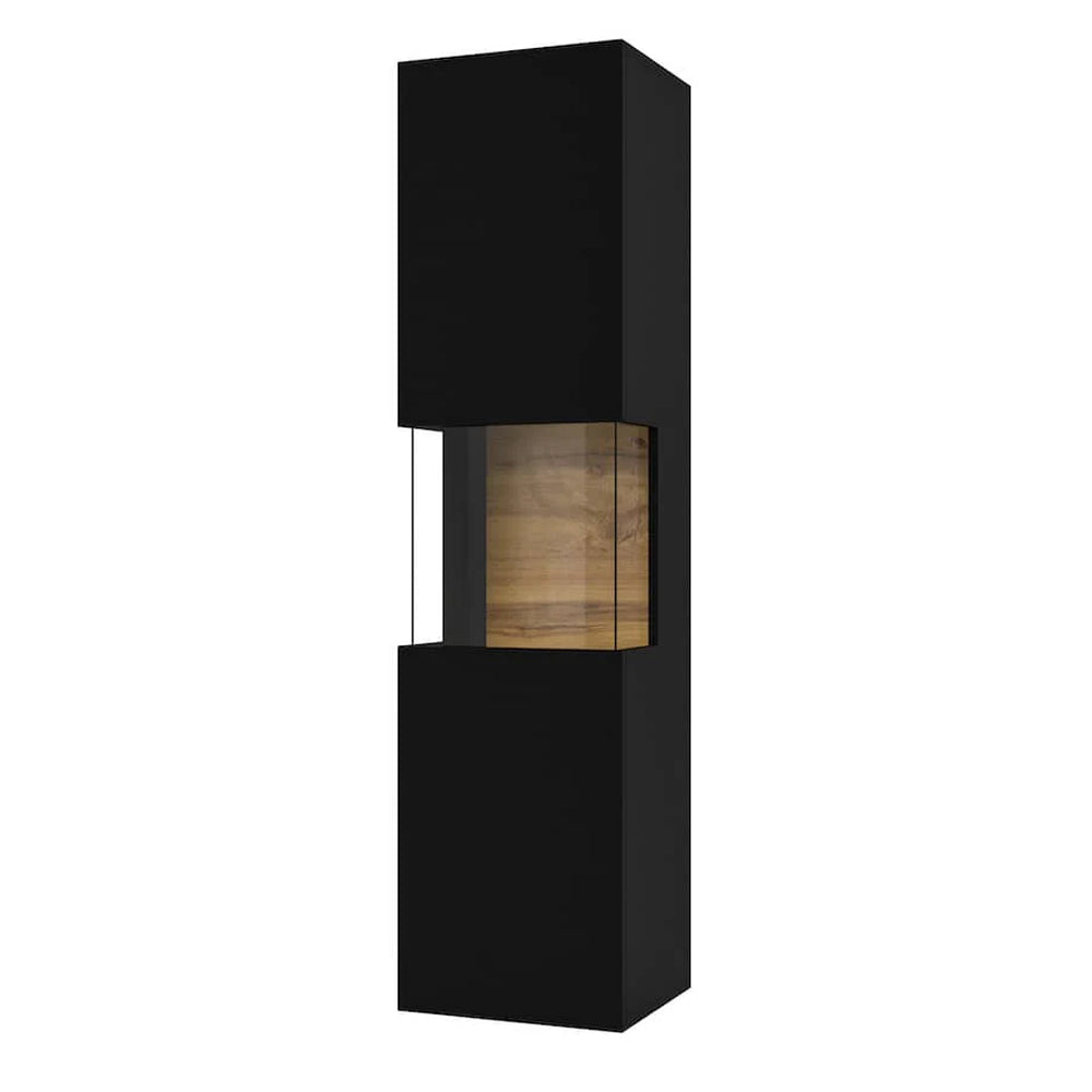 Ava Wooden Tall Display Cabinet in Black Matt & Oak Wotan