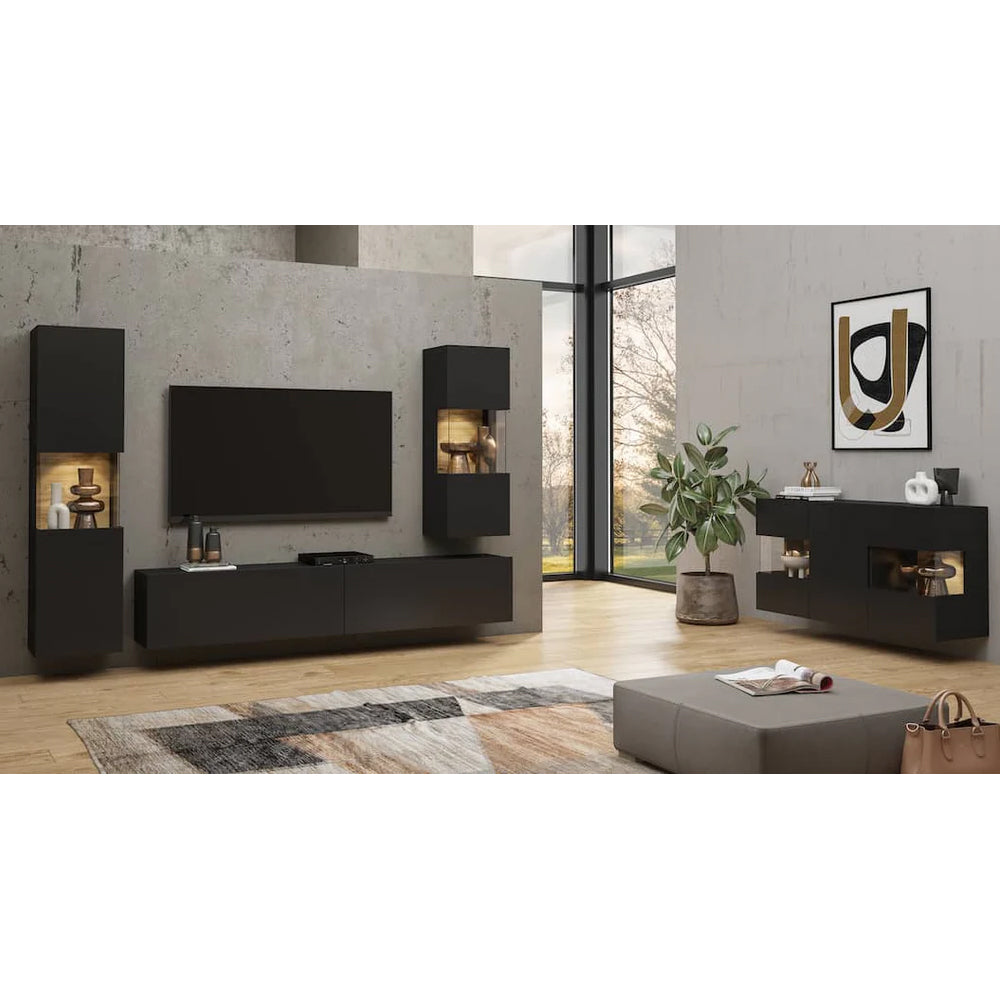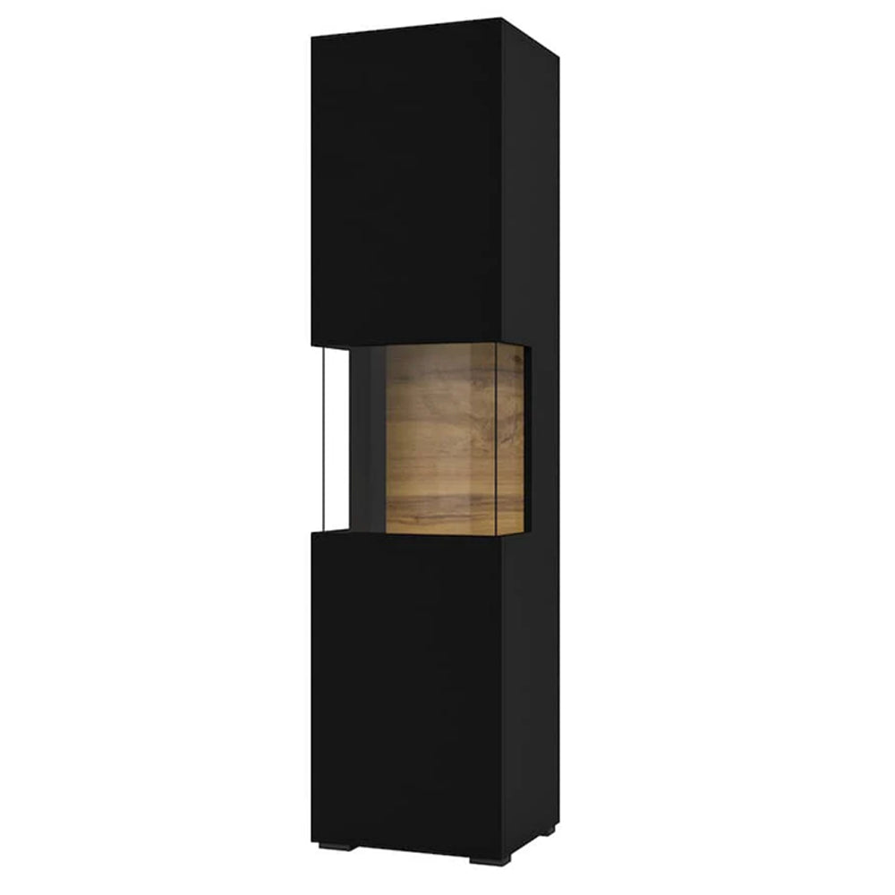 Buy Online Ava Wooden Tall Display Cabinet in Black Matt & Oak Wotan - UK Base