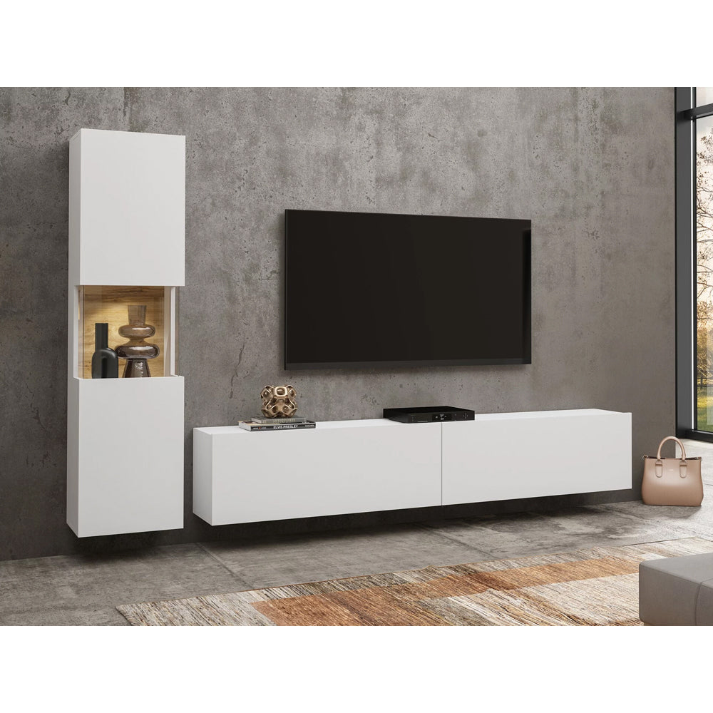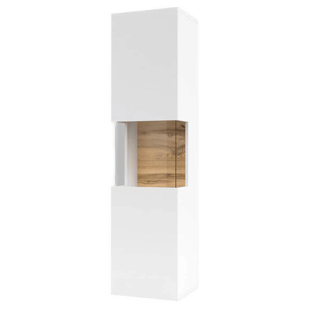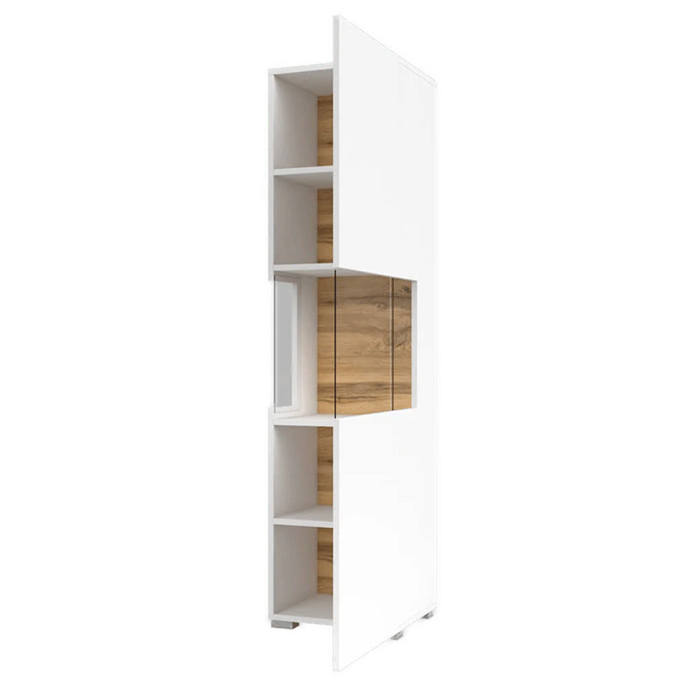Ava Wooden Tall Display Cabinet in White Matt & Oak Wotan
