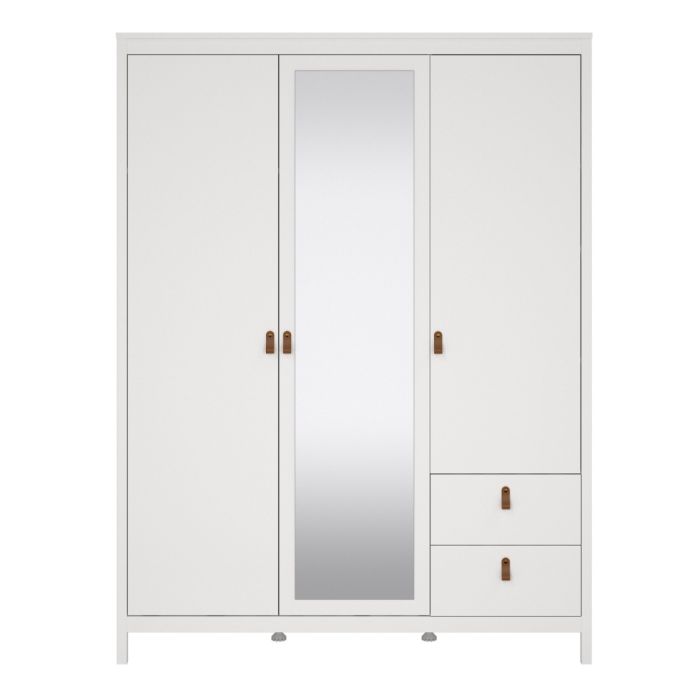 Barcelona Wardrobe with 2 Doors 1 Mirror Door 2 Drawers in White