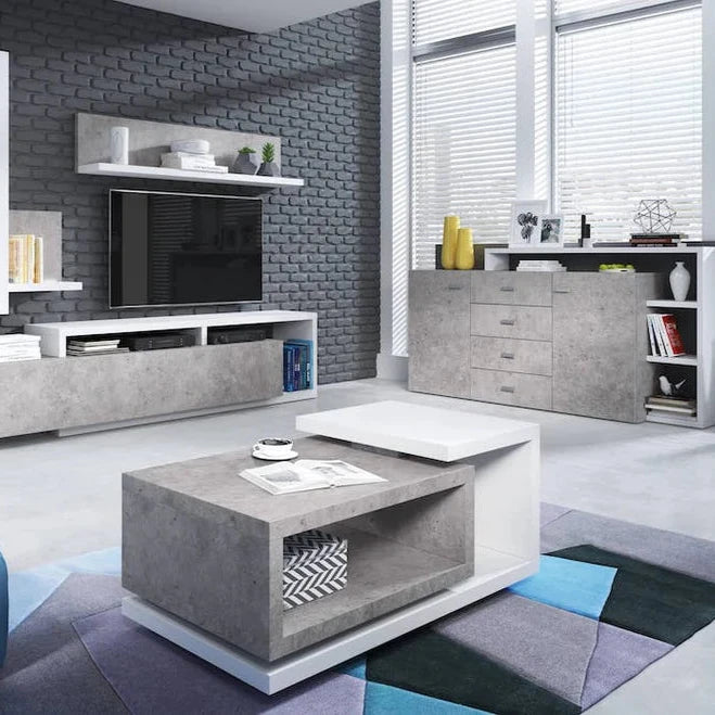 Buy Online Bota Wooden Coffee Table 120cm in Concrete Oak and White Matt - UK Base