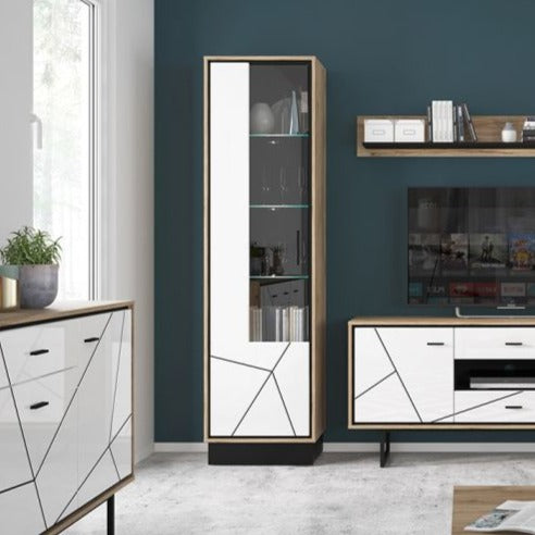 Buy Online Brolo Tall Glazed Display Cabinet (LH) With the Walnut and Dark Panel Finish - UK Base