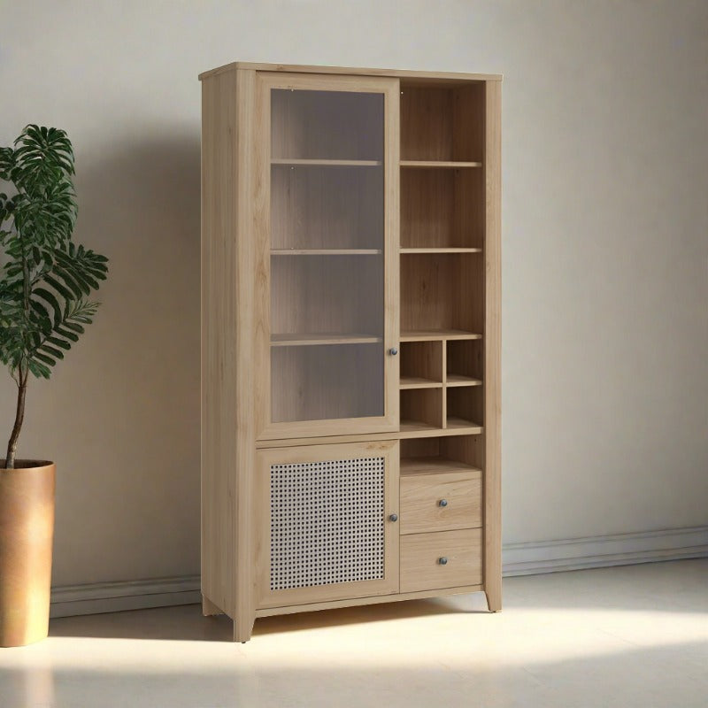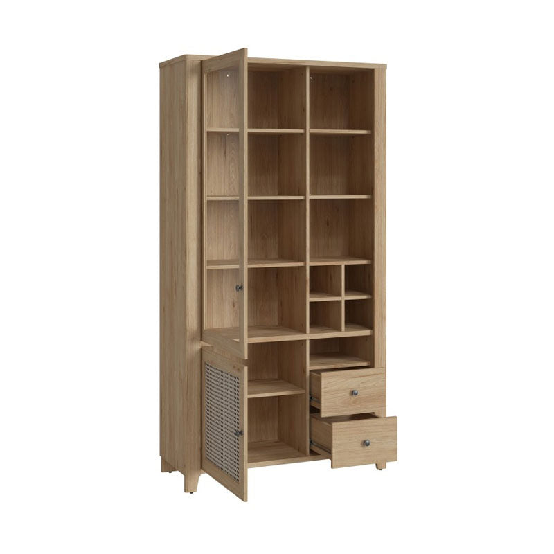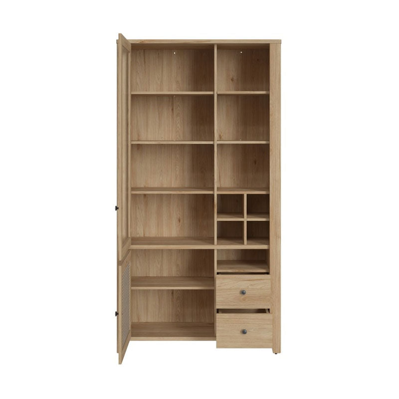Cestino 2 Door 2 Drawer Display Cabinet in Jackson Hickory Oak and Rattan Effect