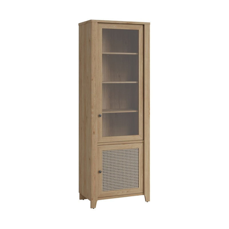 Cestino 2 Door Display Cabinet in Jackson Hickory Oak and Rattan Effect