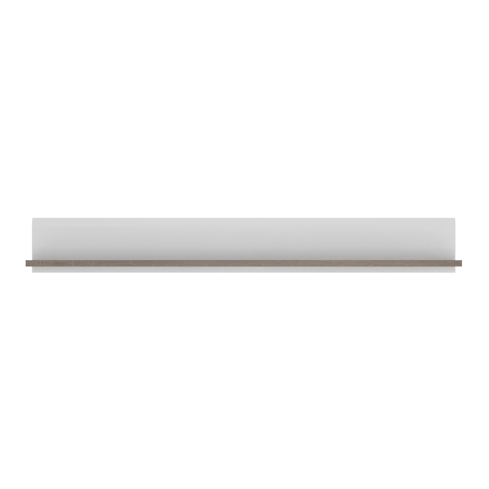 Wall shelf in white with an Truffle Oak trim. Unconventional design - a proposal for the followers of the latest trends. The clever mix of scratch resistant white melamine with beautiful high gloss fronts and oak melamine trim makes this top quality collection of furniture the ideal destination for the most modern of homes, the massive range that includes many cabinets and wall units fulfils every storage and display option.