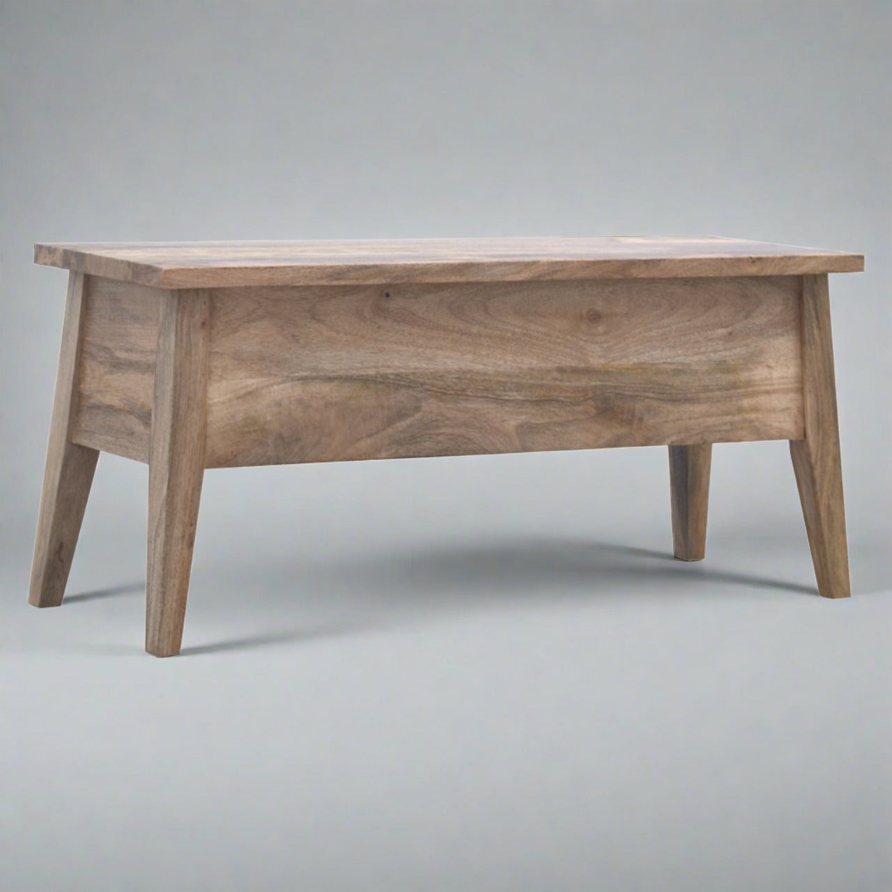 This storage bench is constructed from 100% solid mango wood and has a fine oak-is finish. Useful storage space is provided under the seat, and the lid stays open so you can safely and easily take things in and out. Both good-looking and practical, this bench gives a warm, cosy feel in the living room, hallway or bedroom. Other features include 4 Nordic-style legs.