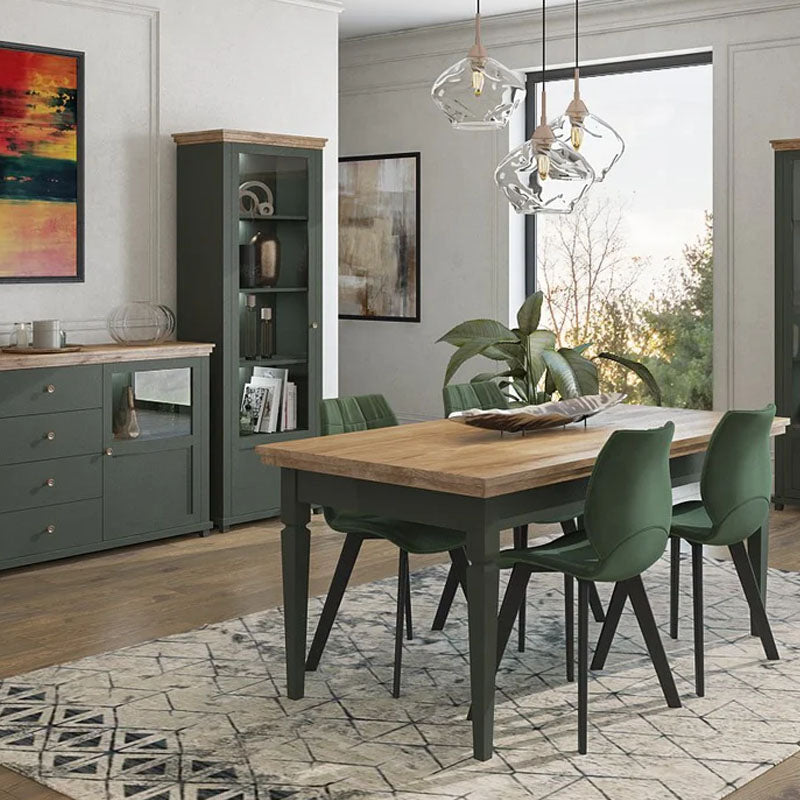 Buy Online Evora Tall Narrow Left Handed Wooden 1 Glass Door Display Cabinet in Green and Oak Lefkas - 71cm - UK Base