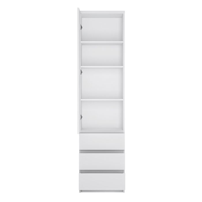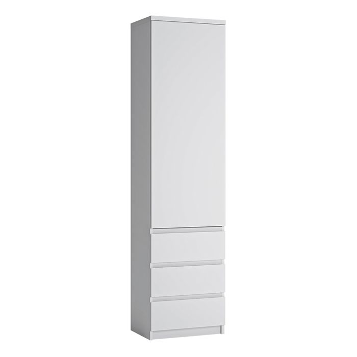 Buy Online Fribo Tall narrow 1 door 3 drawer cupboard in White - UK Base