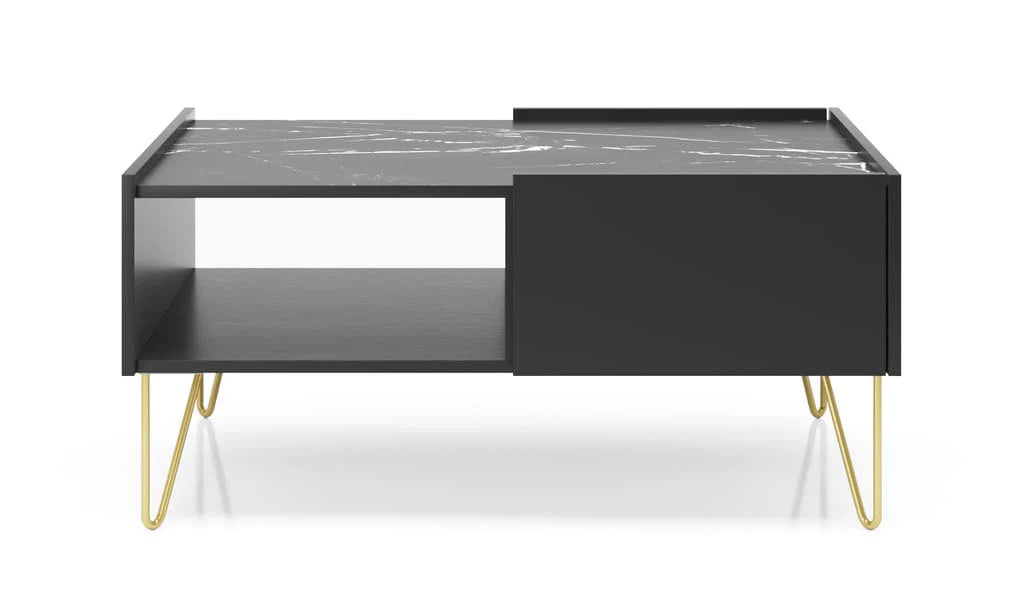 Harmony Wooden Coffee Table 97cm in Black and Black Marble