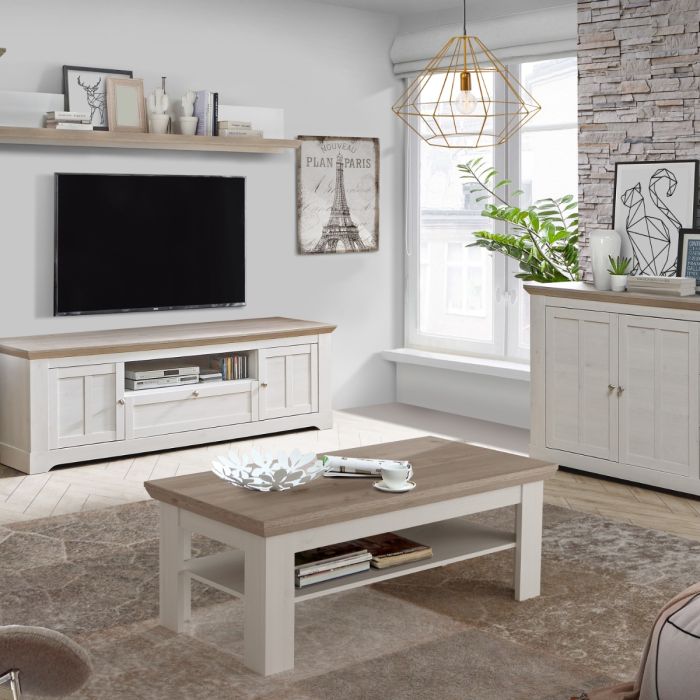 Enhance the ambiance of your home with the exquisite Illopa collection, a seamless fit for any living space. Its most outstanding feature lies in the array of shapes it offers, granting you the freedom to artistically arrange every room in your house, from the inviting hall to the cozy living room. The captivating combination of beautiful white and oak imbues your home with a sense of tranquility, fostering an atmosphere of relaxation and peace.