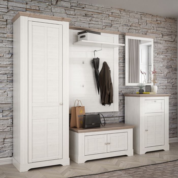 Enhance the ambiance of your home with the exquisite Illopa collection, a seamless fit for any living space. Its most outstanding feature lies in the array of shapes it offers, granting you the freedom to artistically arrange every room in your house, from the inviting hall to the cozy living room. The captivating combination of beautiful white and oak imbues your home with a sense of tranquility, fostering an atmosphere of relaxation and peace.