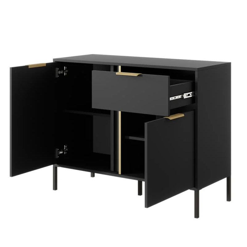 Buy Online Lars Wooden Sideboard 2 Doors 1 Drawer in Anthracite & Gold - UK Base