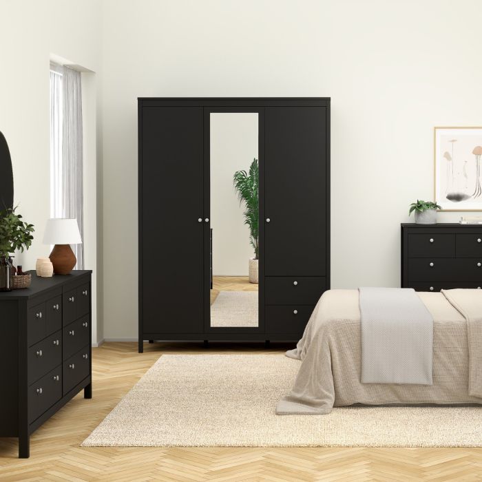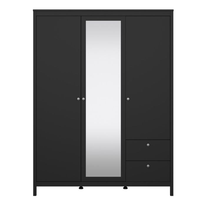Buy Online Madrid Wardrobe with 2 Doors 1 Mirror Door 2 Drawers Matt Black - UK Base