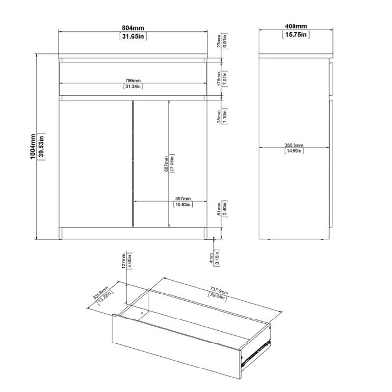 Featuring one smooth-gliding drawer and two spacious cupboard compartments, this sideboard provides organised storage for tableware, documents, electronics, or everyday essentials. Adjustable door hinges ensure perfect alignment, while easy-glide runners enhance everyday usability.