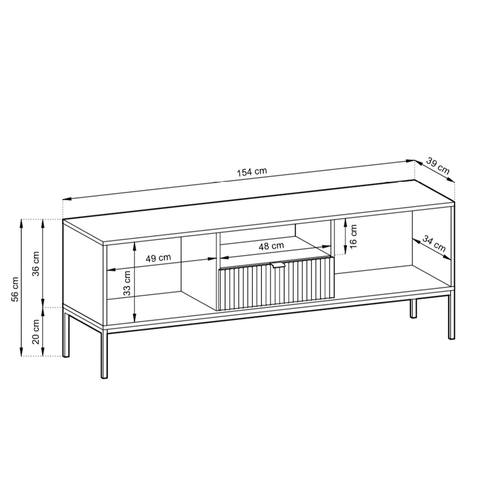 Nova is the perfect TV cabinet that can easily fit in any modern or contemporary space. It features two hinged doors, one drawer and one open compartment for storage. Available in three colour schemes with black metal legs, it will effortlessly blend in any decor. Made from 16mm laminated board and reinforced with ABS edging, the Nova TV cabinet will be a great addition to your living area!