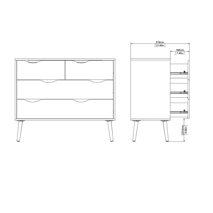 Oslo Chest of 4 Drawers (2+2) in Black and Oak - UK