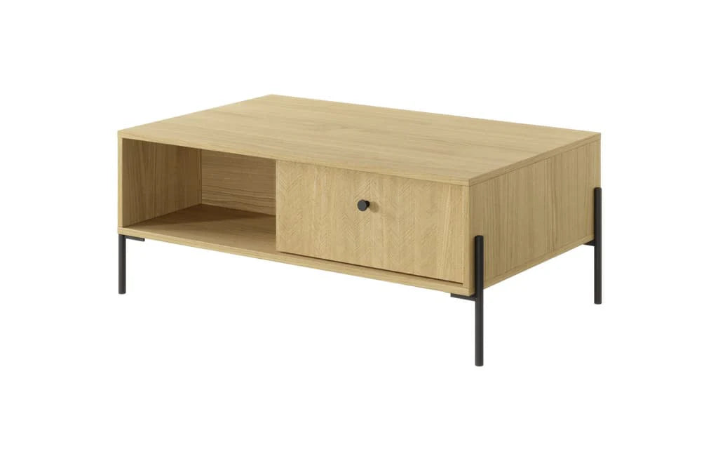 Buy Online Scandi Wooden Coffee Table 101cm in Scandi Oak With Black Metal Legs - UK Base