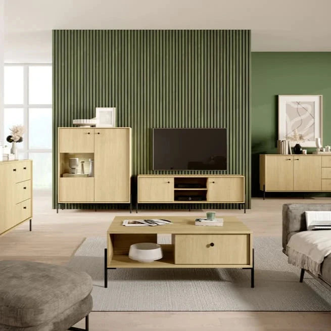 The Scandi Wooden Coffee Table is a stunning centerpiece that effortlessly blends functionality and style to transform your living space. Crafted with meticulous attention to detail, this exquisite table showcases the timeless charm of scandi oak, exuding warmth and elegance. Organize magazines, remote controls, and other items in the drawers, while displaying your favorite books or decorative pieces in the open compartment.
