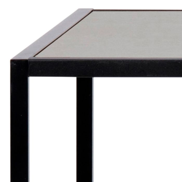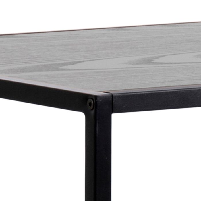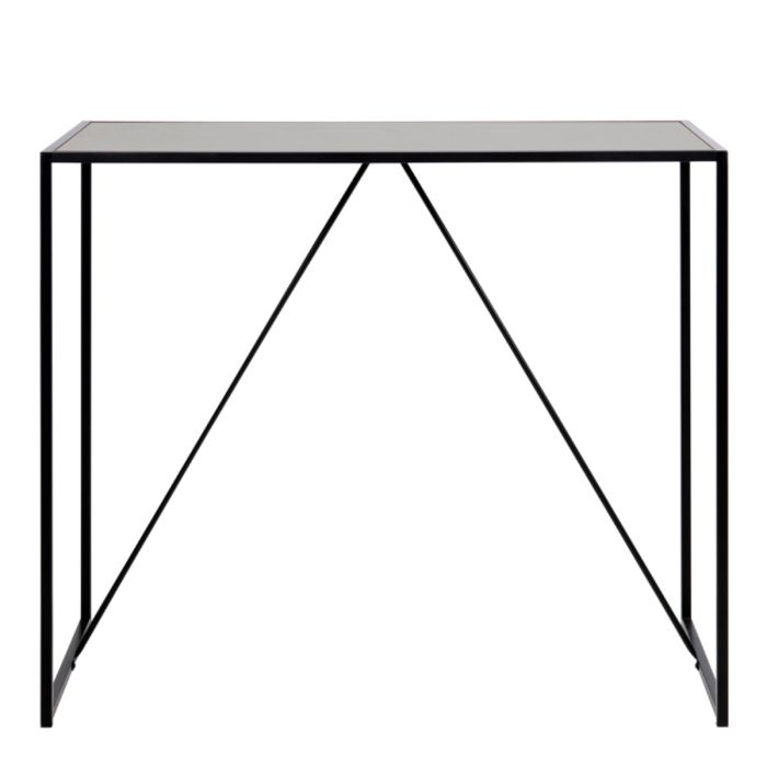 This uniquely designed bar table, boasting exclusive design rights, serves as the ideal punctuation mark to elevate any dining room with flair. Sporting a modern aesthetic, its sleek metal base adds an industrial edge, seamlessly merging with the black ash melamine tabletop to create a chic and contemporary centerpiece that complements a wide range of home décors.