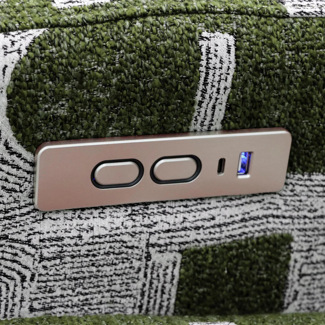 Relax in style with the Seville Electric Reclining Chair. Designed for everyday comfort, this cosy electric recliner features a smooth power reclining mechanism, a gentle rocking function, and convenient USB & USB-C charging ports. Available in Green & White and Red & White fabric, it’s the perfect blend of comfort, style and modern living.