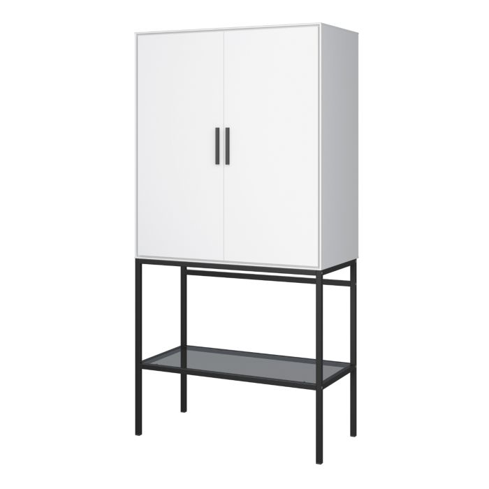 Buy Online Slimline 2 Door Tall Cabinet in Pure White with Steel Black Legs - UK Base
