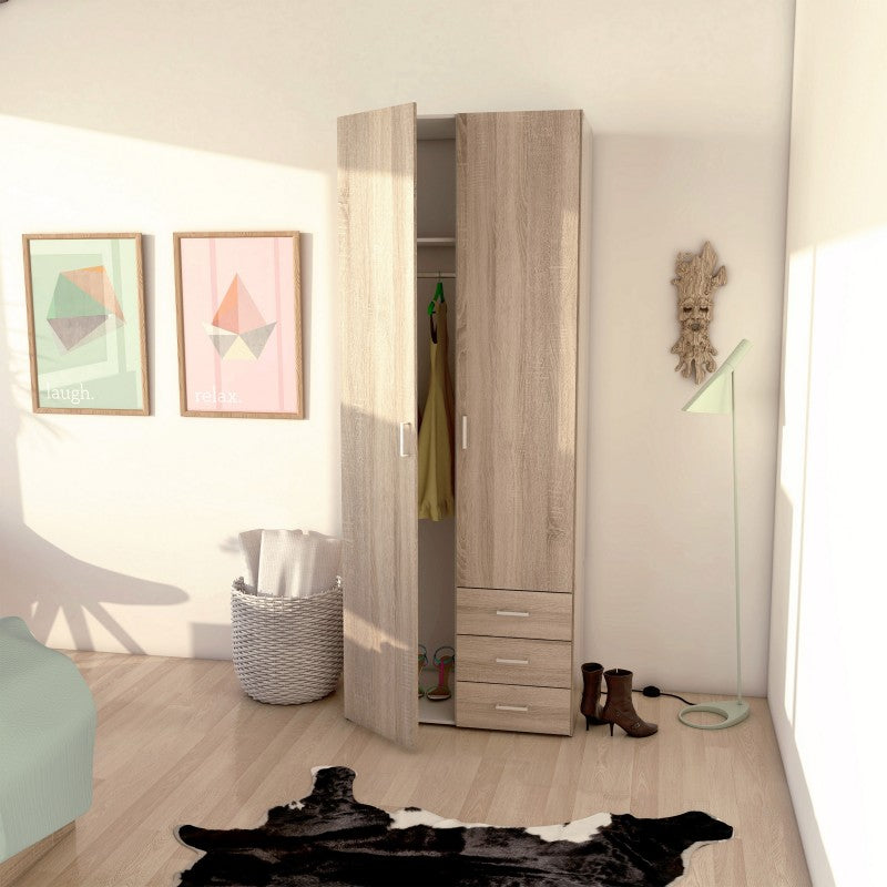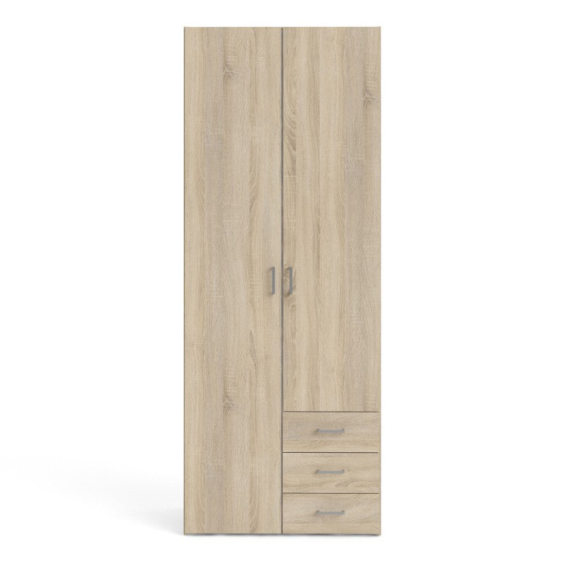 Space Wooden Wardrobe 2 Doors 3 Drawers in Oak