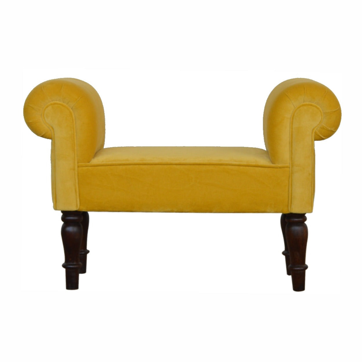 This mini bench takes a twist on our original mustard bench. Ideal for a hallway, end of the bed or any living area in your home. It has been upholstered in mustard cotton velvet featuring turned legs constructed from 100% solid mango wood and perfect for adding a pop of color to any room.