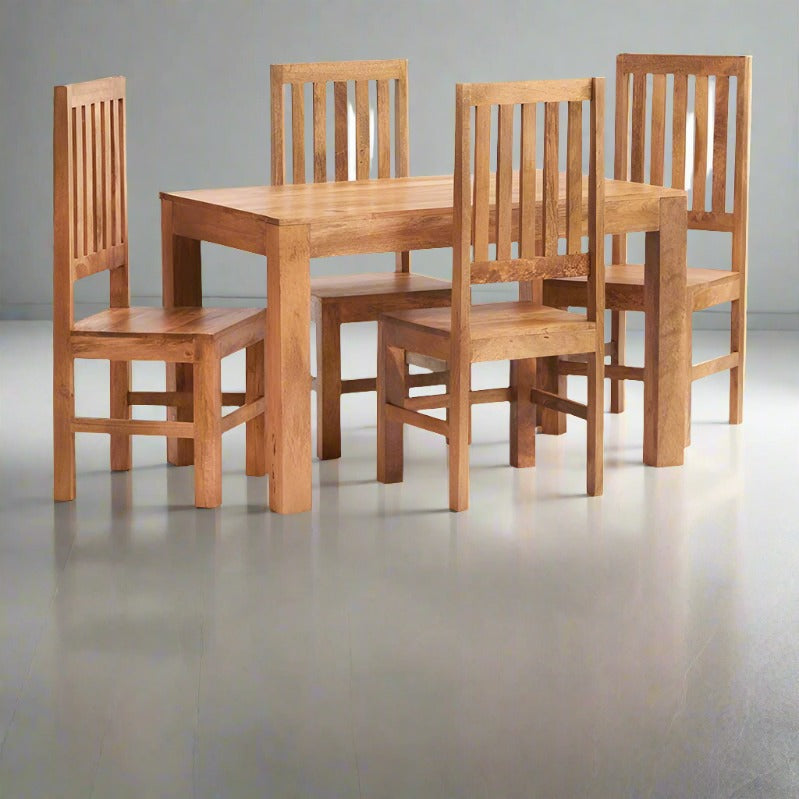 Toko Light Mango 4 Ft Dining Set With Wooden Chairs - UK