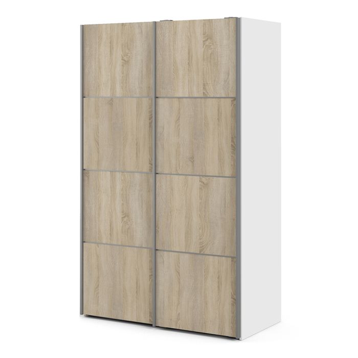Verona Sliding Wardrobe 120cm in White with Oak Doors with 5 Shelves - UK
