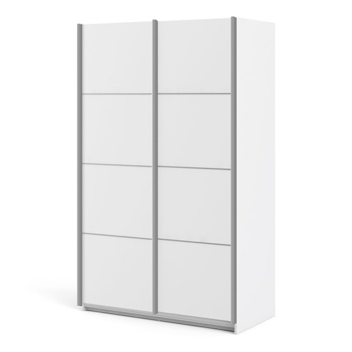 Buy Online Verona Sliding Wardrobe 120cm in White with White Doors with 2 Shelves - UK Base