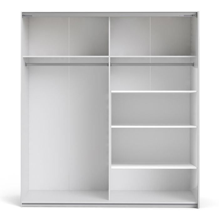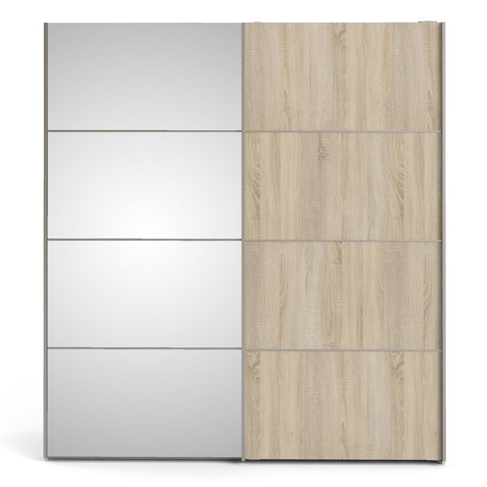 Buy Online Verona Sliding Wardrobe 180cm in White with Oak and Mirror Doors with 5 Shelves - UK Base