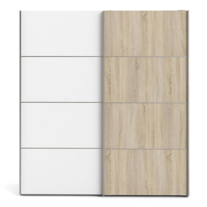 Buy Online Verona Sliding Wardrobe 180cm in White with White and Oak doors with 2 Shelves- UK Base