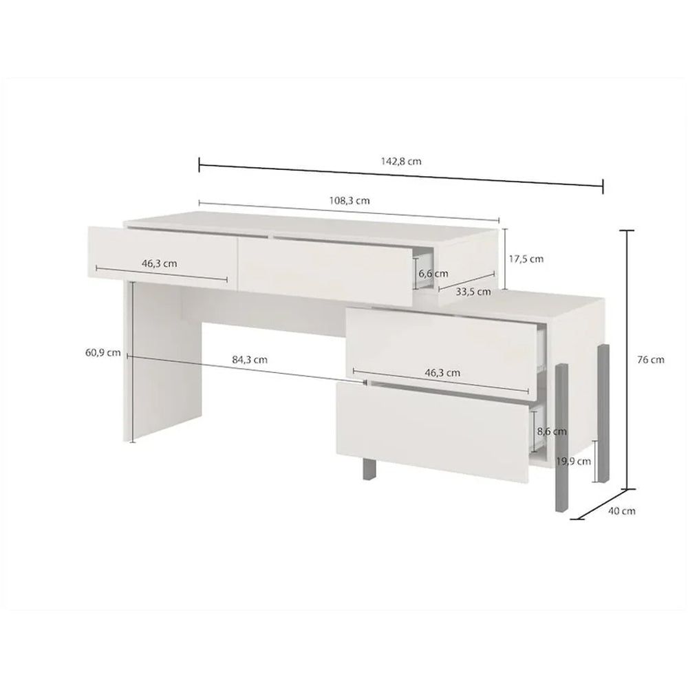 Featuring four spacious drawers, this wooden dressing table provides ample space for cosmetics, grooming essentials, accessories, and everyday items. The elegant black metal legs create a striking contrast against the cashmere finish, giving the piece a light, elevated appearance while ensuring stability. Durable ABS edging protects against daily wear and extends the life of the furniture.