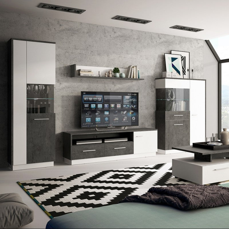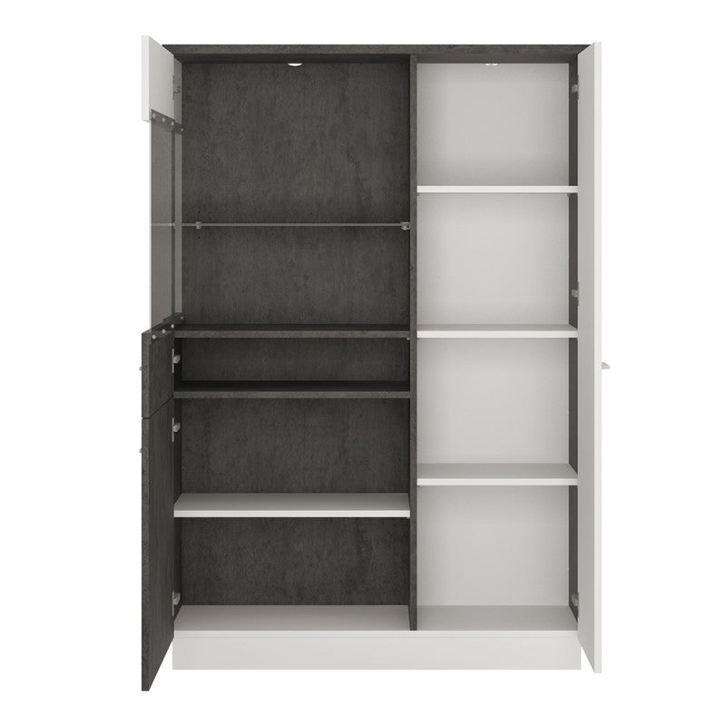 Zingaro Left Handed Low Wooden Display Cabinet in Slate Grey and Alpine White